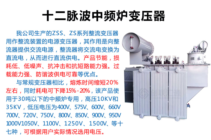 12脈波中頻爐專用變壓器適用于冶煉廠、特別是鑄造廠、大型用電企業(yè)等。