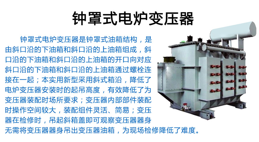 電爐變壓器斜鐘罩式油箱結(jié)構(gòu),是由斜口沿的下油箱和斜口沿的上油箱組成,斜口沿的下油箱和斜口沿的上油箱的開口向?qū)?yīng),斜口沿的下油箱和斜口沿的上油箱通過螺栓連接在一起;本實(shí)用新型采用斜式箱沿,降低了電爐變壓器安裝時(shí)的起吊高度,有效降低了為變壓器裝配時(shí)場所要求;變壓器內(nèi)部部件裝配時(shí)操作空間較大,裝配組件靈活、簡易;變壓器在檢修時(shí),吊起斜箱蓋即可觀察變壓器器身,無需將變壓器器身吊出變壓器油箱,為現(xiàn)場檢修降低了難度。