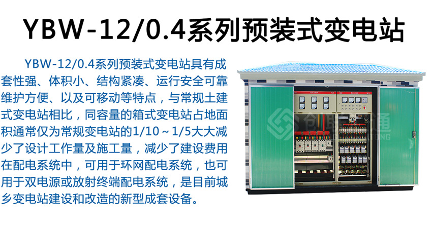 YBW-12系列預(yù)裝式箱式變電站YBW-12系列預(yù)裝式變電站符合標準IEC1330:1995《高壓/低壓預(yù)裝式變電站》的有關(guān)要求、GB/T17467-1998《高壓/低壓預(yù)裝式變電站》。