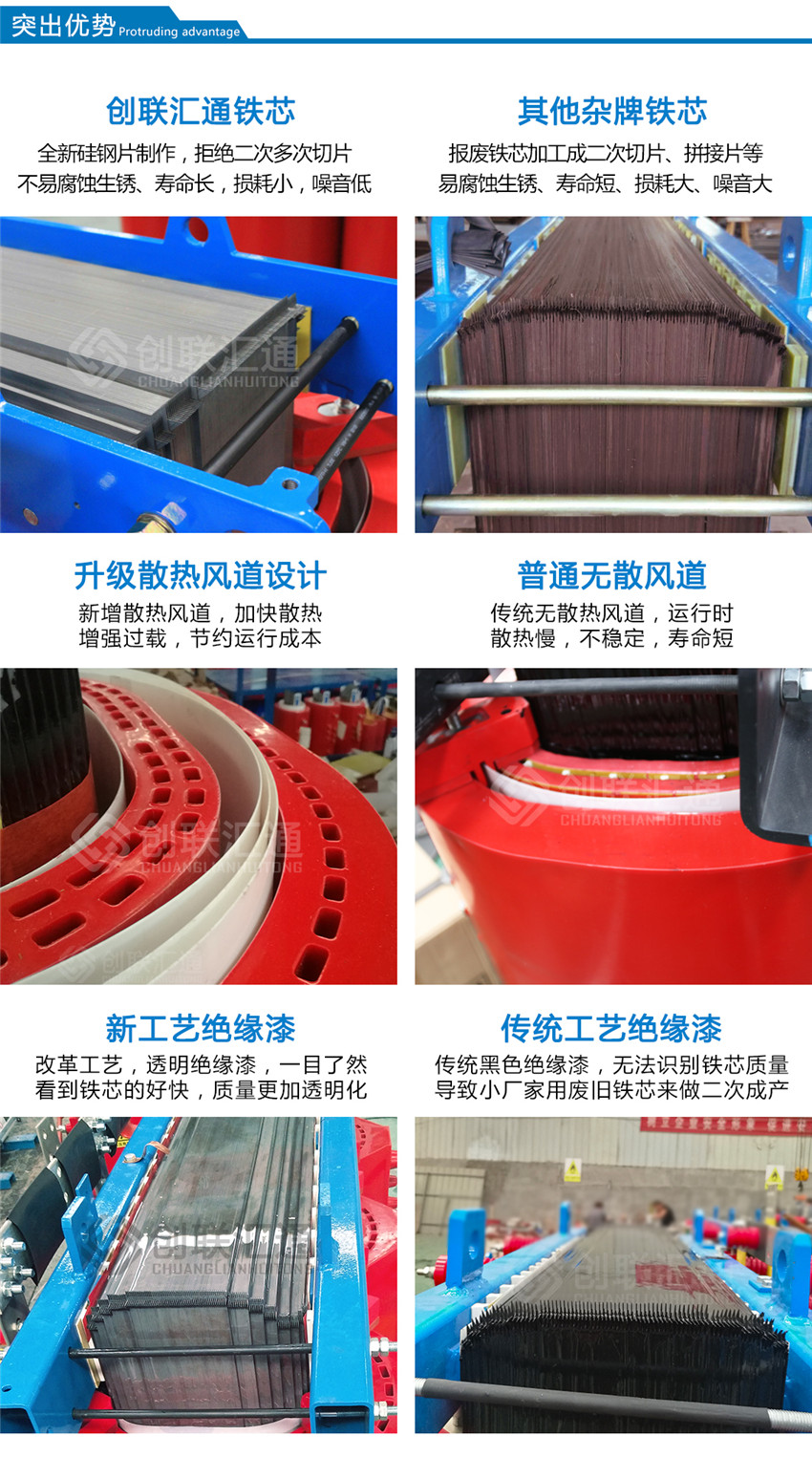 改良之后的干式變壓器加強(qiáng)絕緣等級,降低變壓器溫升,增加有功功率的使用,過載能力強(qiáng),使用壽命長。